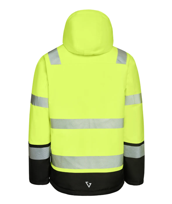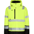 Hlý og þæginleg vatnsheld vinnuúlpa í sýnileika, mittissíð og með hettu