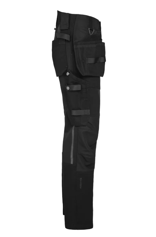 Iðnaðarbuxur frá Björnkläder með teygjuefni á innanverðum lærum. Styrkingar innan á vösum og á hnépúðavösum.