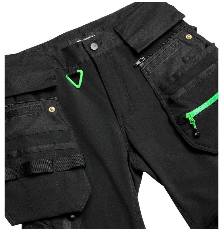 Frábærar Smíðabuxur frá Björnklader sem eru „full stretch“. Með softshell efni sem hrindir frá sér vatni, Hægt er að renna verkfæravösum af.